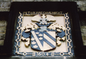 ‘It is not know when building began, but Sir Peter De Frescheville II placed above the door of the enlarged Hall a slab inscribed with his name, achievement of arms, and the date 1604. This still stands (though now incorporated into a porch of much later date). The Shield of Arms is interesting and enigmatic, in that it depicts the paternal coat of Frescheville impaling that of Margaret Kaye, sir Peter’s mother. To those who understand the rules and conventions of heraldry, this poses a considerable problem, since one would expect the coat of Frescheville alone.